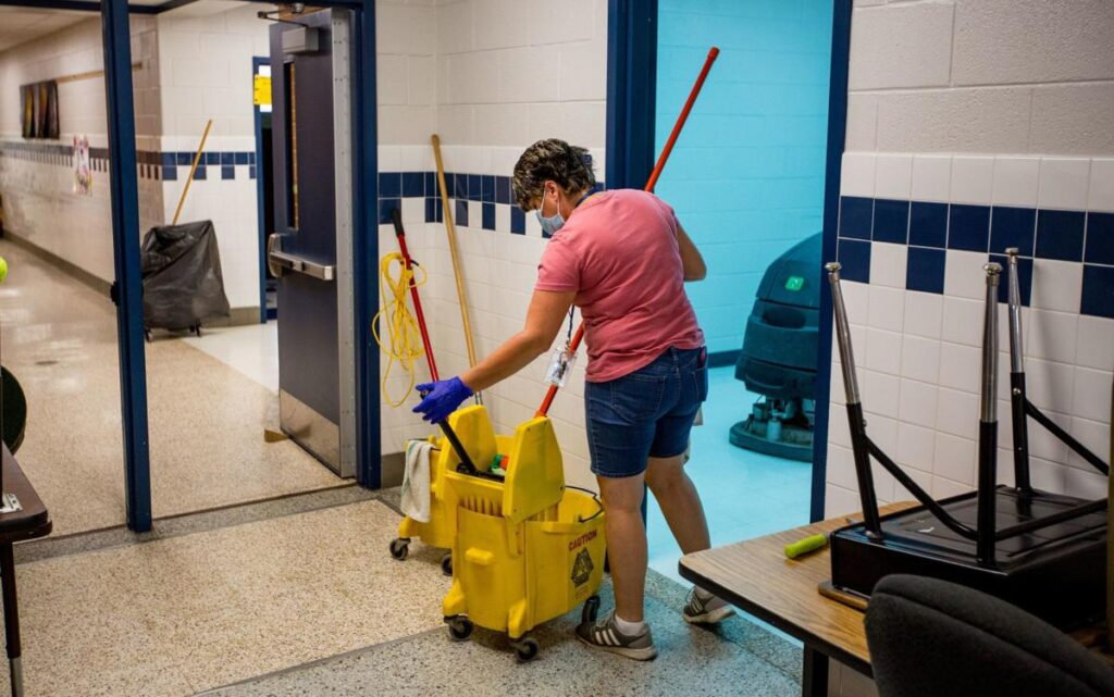 - Dusting and disinfecting all surfaces, desks, and chairs.